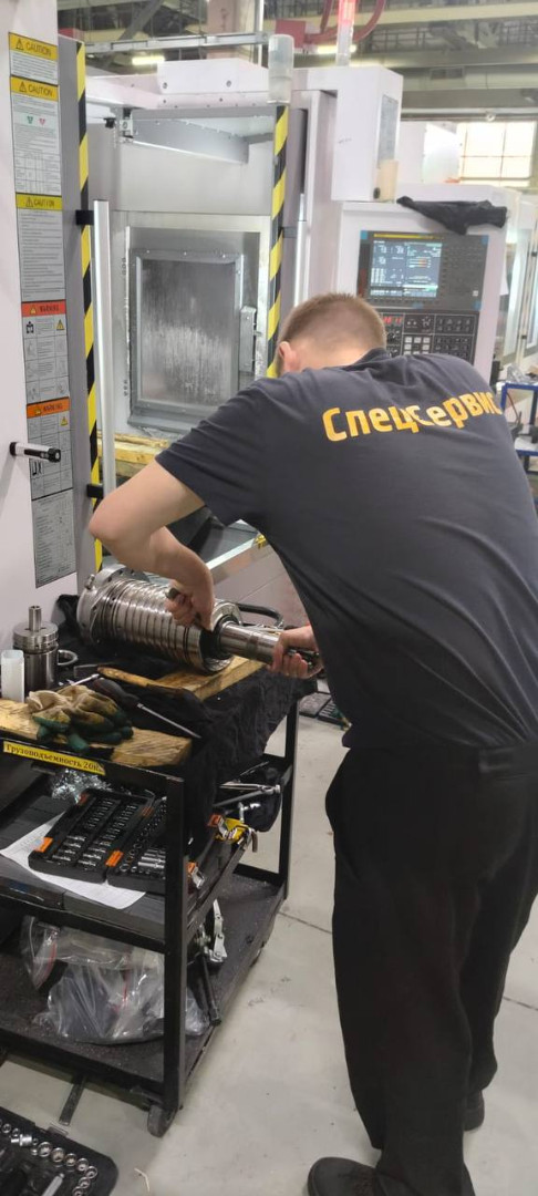 Установка и проверка на оборудовании — шпиндель устанавливается обратно в станок или оборудование, финальный этап — проверка работы в реальных условиях с измерением точности обработки, стабильности вращения, соответствия заводским параметрам.